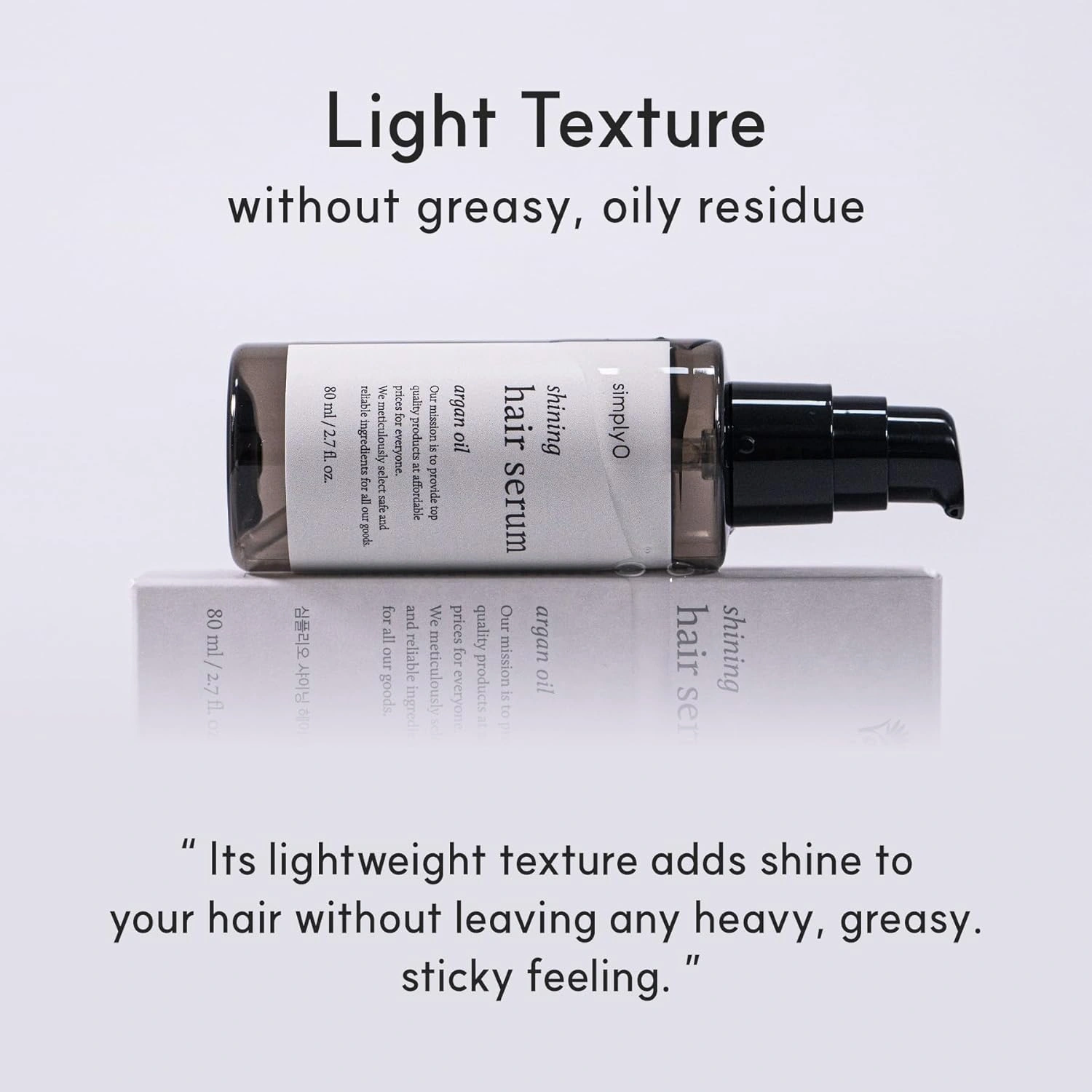 Simplyo Shining Hair Serum is enriched with a harmonious blend of six natural oils, including argan oil, jojoba oil, and camellia seed oil.
