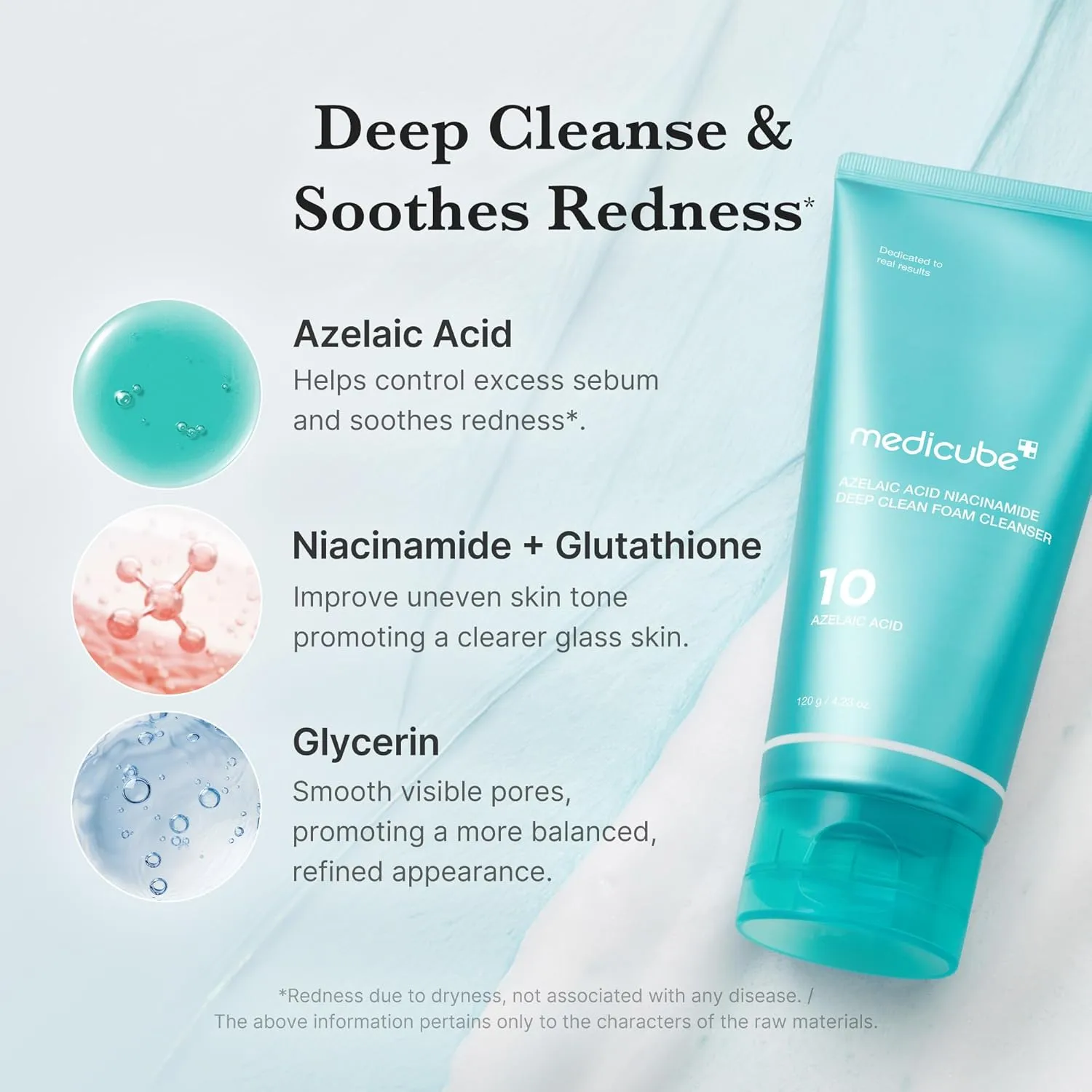 Medicube Azelaic Acid Niacinamide Deep Clean Foam Cleanser 120g – a creamy deep cleansing foam cleanser formulated with 99% purity azelaic acid and 2% Niacinamide.
