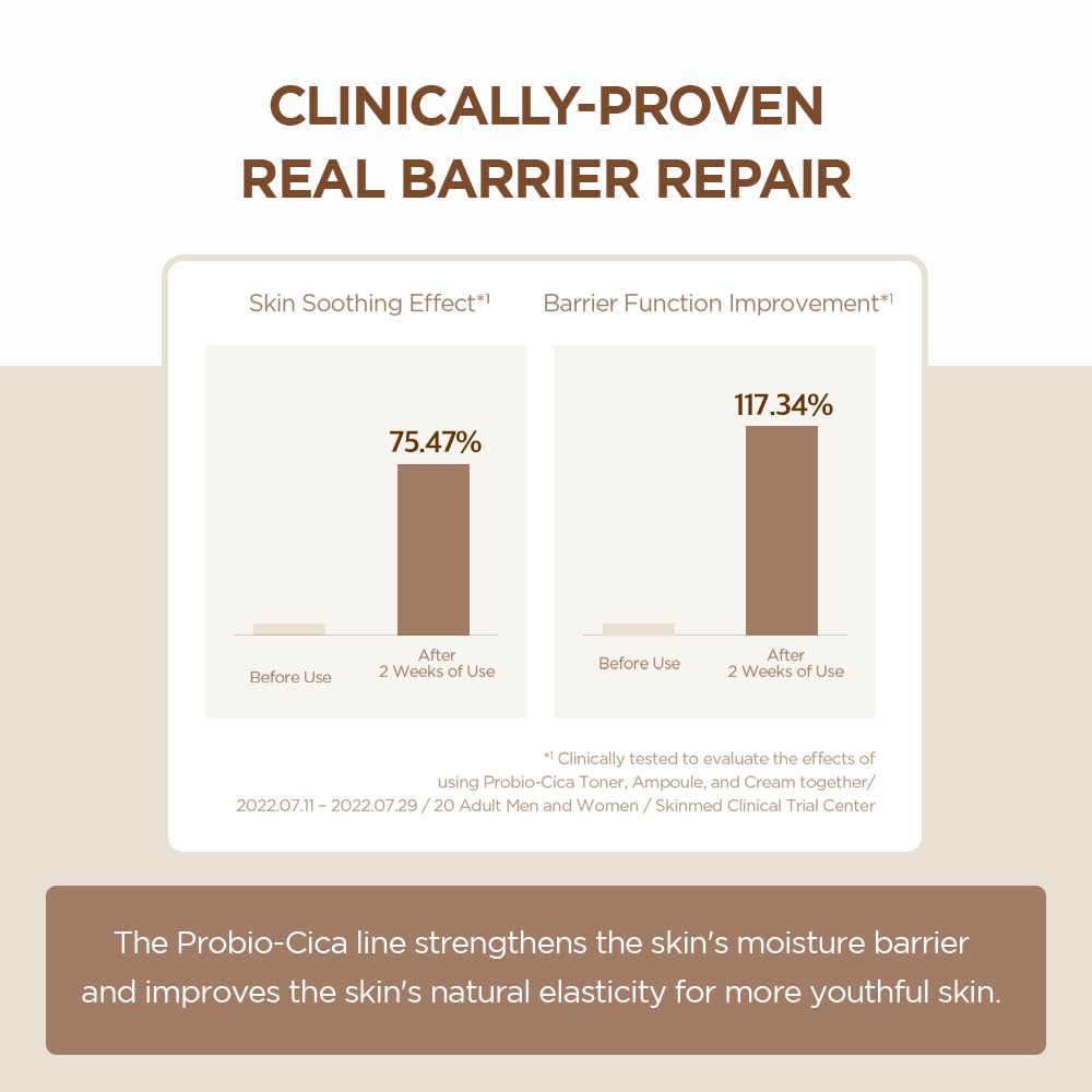 - Probio-Cica Complex (Fermented Centella + Probiotics): Strengthens barrier and soothes irritation.