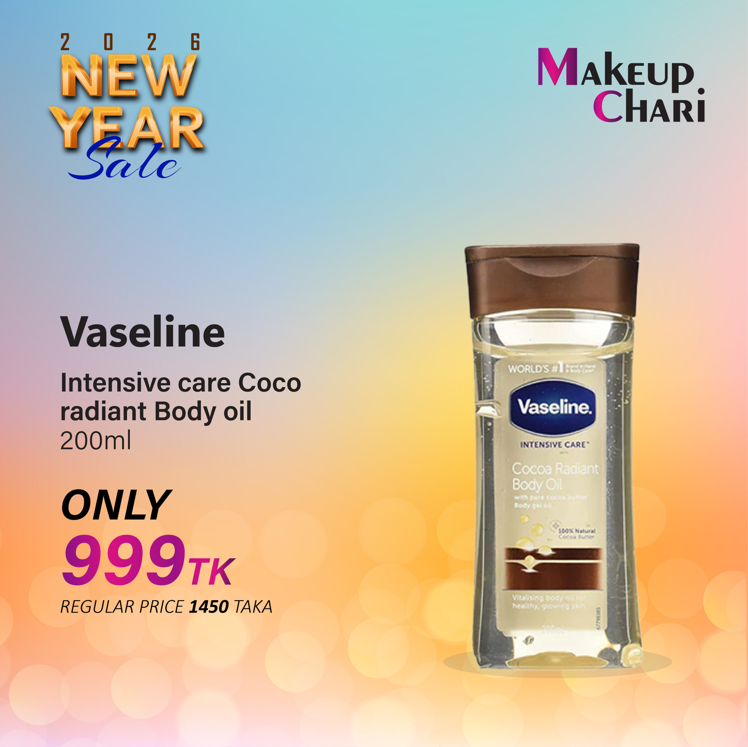 Vaseline Intensive Care Cocoa Radiant Body Oil deeply nourishes dry skin with cocoa butter and Vaseline Jelly, leaving it soft, radiant, and non-greasy .